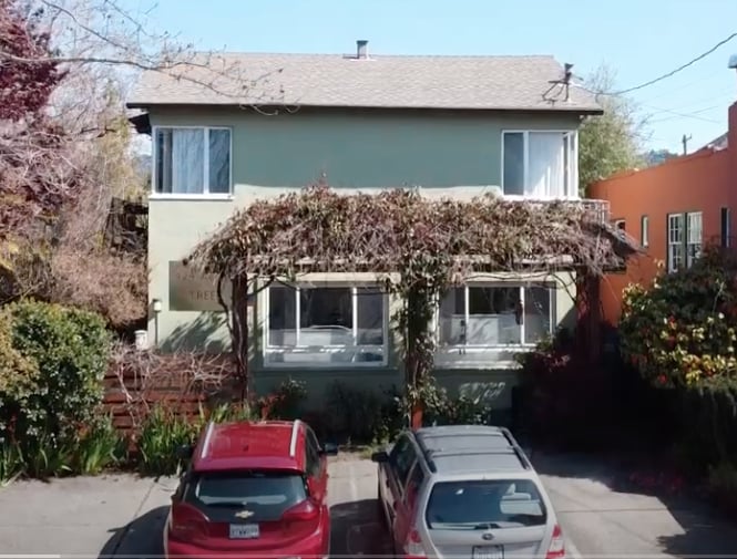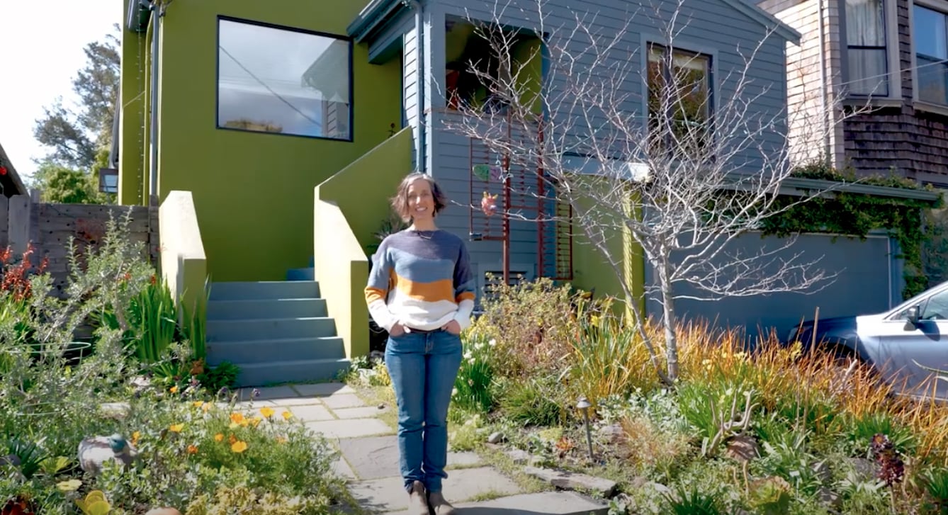 Kiera and her family did a fabulous job with a 2018 remodel to her 100 year old Berkeley house. The most interesting thing to me was an extensive grey water and rainwater catchment system created by Dig Cooperative. Toilets flush with rainwater collected from runoff from the roof, while water from the showers and sinks is collected as grey water to irrigate the landscaping. The house is still connected to the municipal water system so if they run out of stored water it’s easy to switch the system back and forth. Click on the image to watch Kiera’s tour.