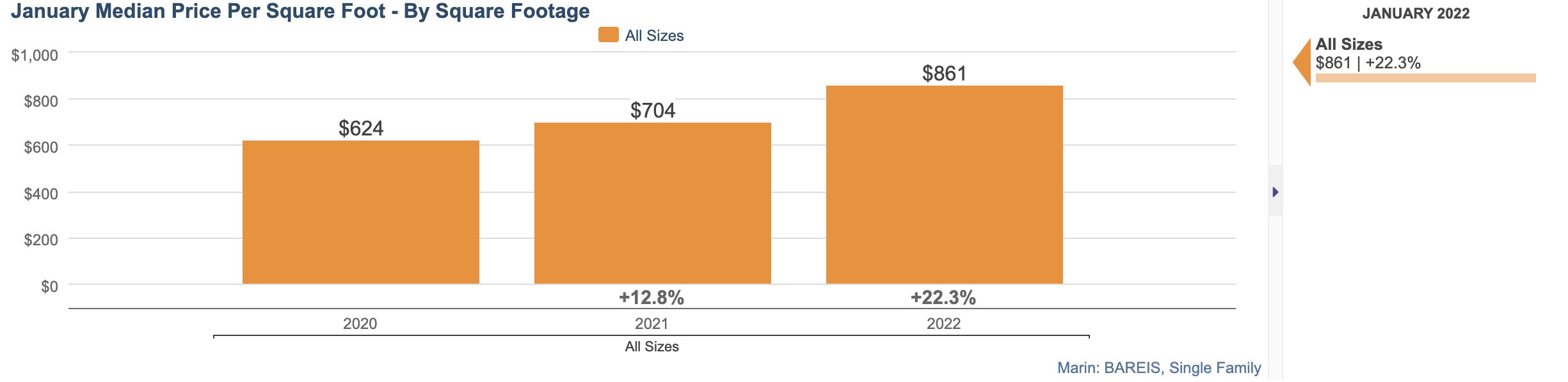 2022 opened with a lot of questions. Will inventory increase? Will interest rates rise? Will prices drop? Will prices ever stop climbing? The big picture answer is - the shortage of homes that is driving price increases is unlikely to change any time soon, as demand for homes remains high and housing is not being built fast enough to keep up. As of January 26, the Fed indicated that interest rates will rise, perhaps a few times in the next several months. This is expected to slow some of the record price increases of the past two years, but due to low supply and the overall good news on the employment front, especially in our local area, we will still see a seller’s market in 2022. In Marin County, single family homes were up 13% from January 2021 while the condo market reached an all time high with a 24% price increase. In San Francisco, condo prices took a hard hit during the height of the pandemic, but January prices and sales indicate that demand is back as the city is returning to its vibrant self.