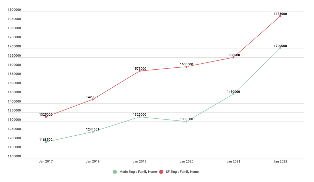 Marin and San Francisco | Single Family Home | Median Sales Price