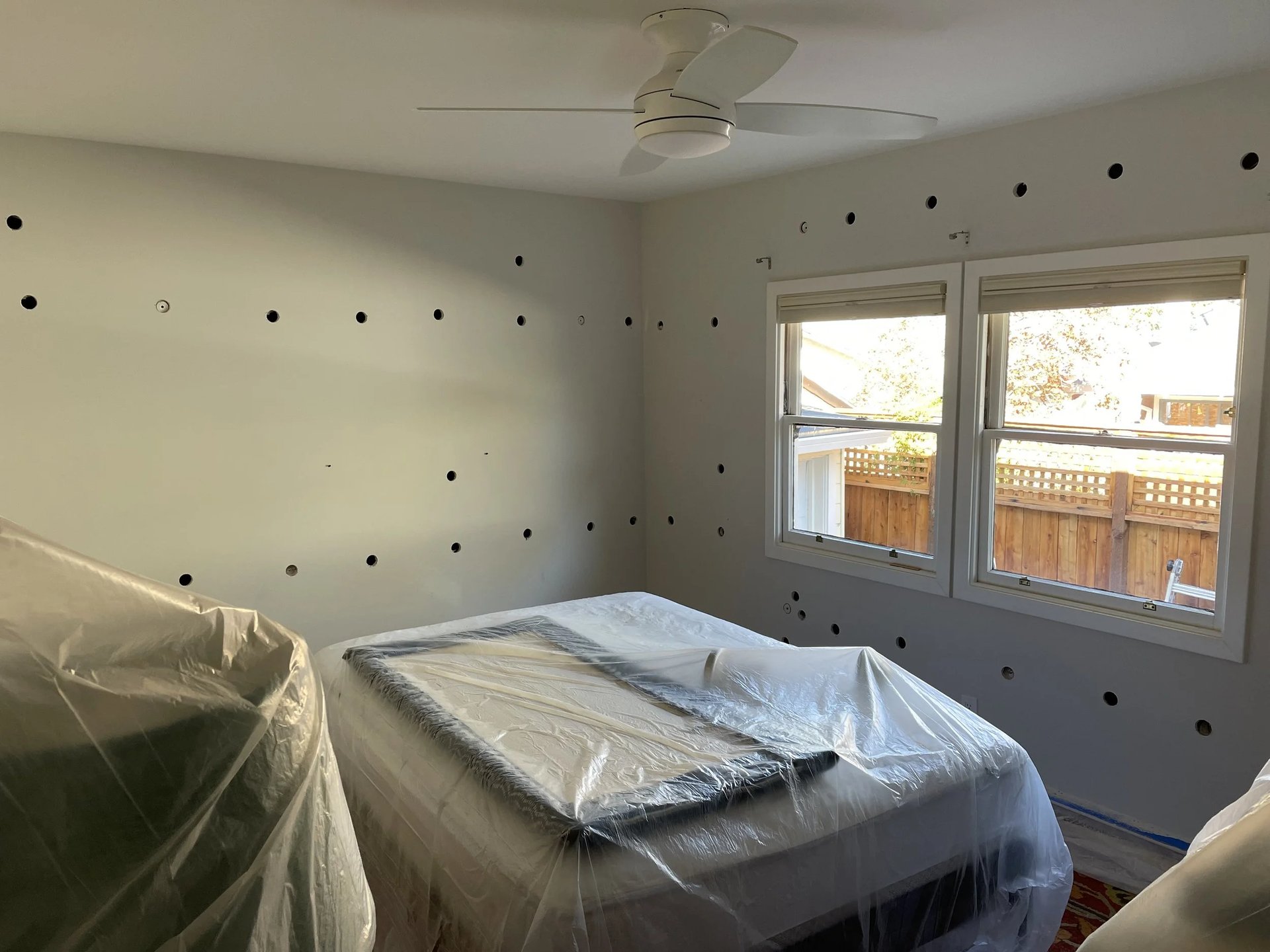 They also drilled holes in all the exterior-facing walls and injected them with blown-in cellulose insulation made from recycled paper. Not only a sustainable product, loose-fill cellulose is highly effective at getting into all the nooks and crannies and creating a high R value. Something I wasn’t expecting is how it changed the sound inside the house. Not only did it dampen sound from the outside, but it changed the way things sound on the inside. Not gonna lie - it was pretty disruptive for a few days, but I can’t wait to see what it’s like when the weather gets hot again!