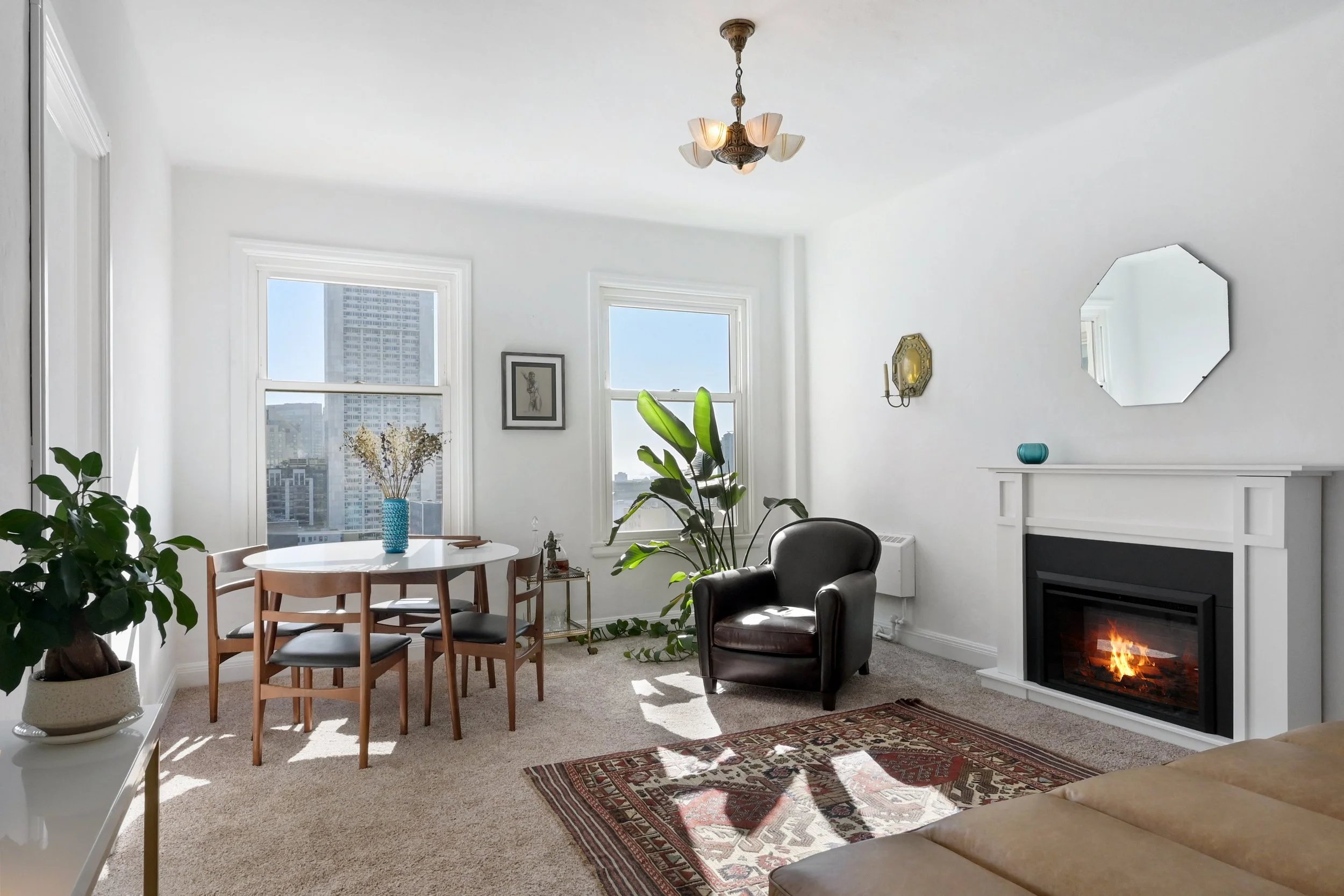 Fantastic city and bay views from this cozy living room.