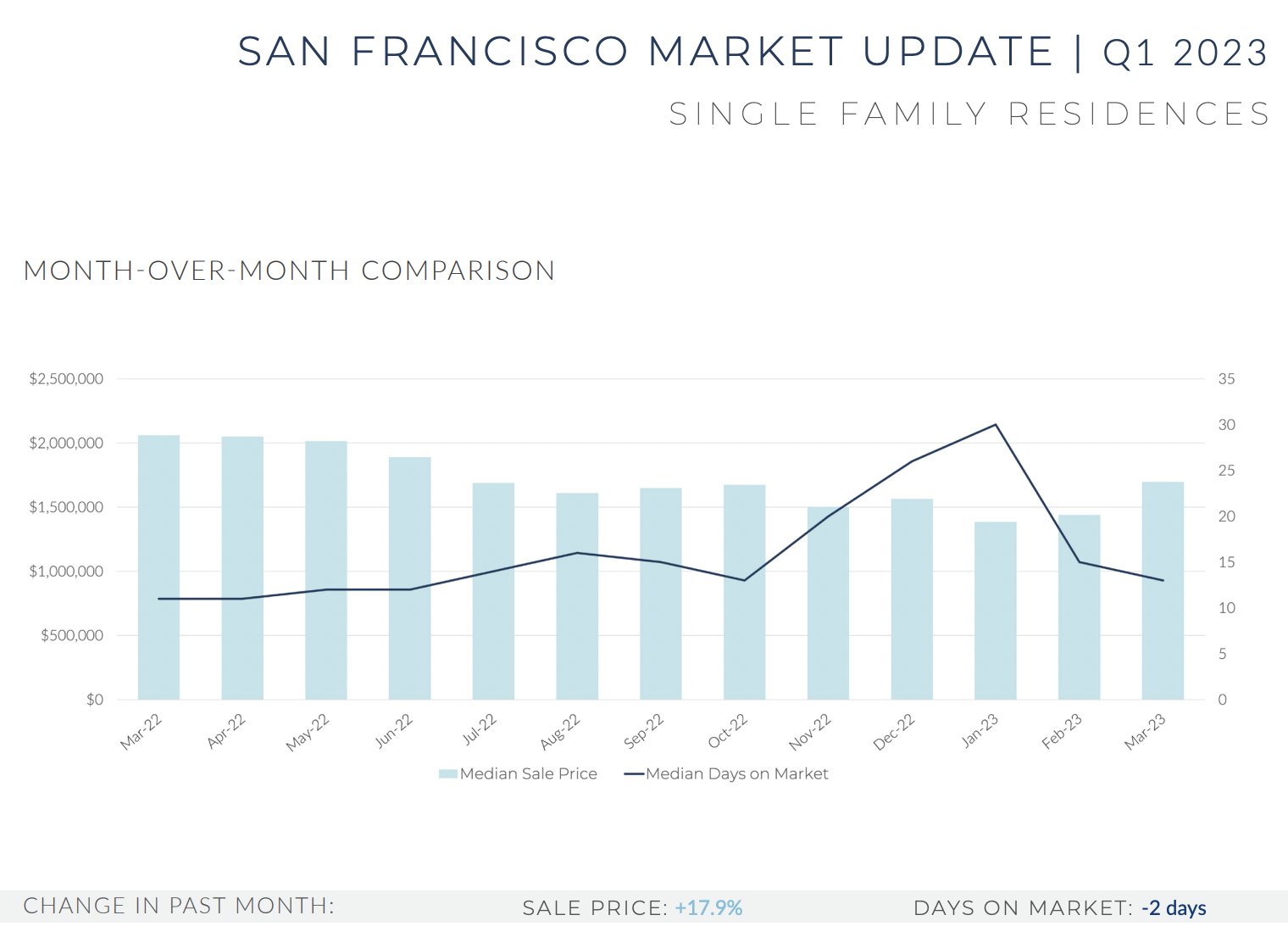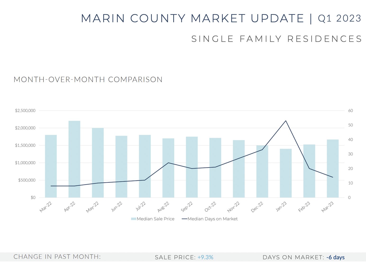 As we look back on the first quarter, it’s evident that the real estate market has seen a significant decline in most key metrics compared to the unprecedented demand spike that was experienced in late 2020 and early 2021. The first quarter recorded an 18.2 percent reduced median sales price for single-family homes and an 8.5 percent decrease for condominiums compared to the same time last year. Despite these figures, the current real estate market sentiment is vastly different from what it was just a couple of months ago. Many buyers are taking advantage of the current landscape and securing deals that haven’t been seen in years. However, while the current situation seems promising for buyers, fluctuating mortgage rates and limited inventory continue to be a significant barrier in the market. As you see from the charts above, the amount of days a property is on the market before being sold is decreasing, while prices are starting to increase. Click the button below to see more details.
