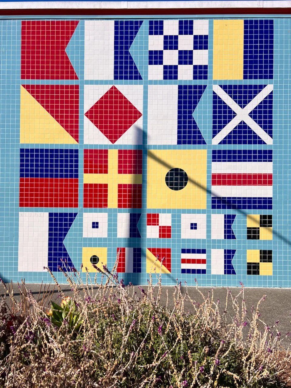 Dan Frost was once again the winner of our photo contest! Many of you recognized the nautical tile mural near Gabrielson Park in Sausalito, but did you know it spells out Bank of America, Sausalito Cal in the international language of signal flags? The Bank of America building and mural were designed by William W. Wurster, noted California architect and long time dean of the UC Berkeley School of Design. After a 1972 remodel the mural was covered for 40 years. Meant to reflect Sausalito’s nautical roots and add color to the local waterfront, the mural was restored in 2014 to honor the work of Mr. Wurster. Check it out the next time you are visiting the ever popular Sausalito Jazz and Blues by the Bay, starting up again on June 6, 2025.