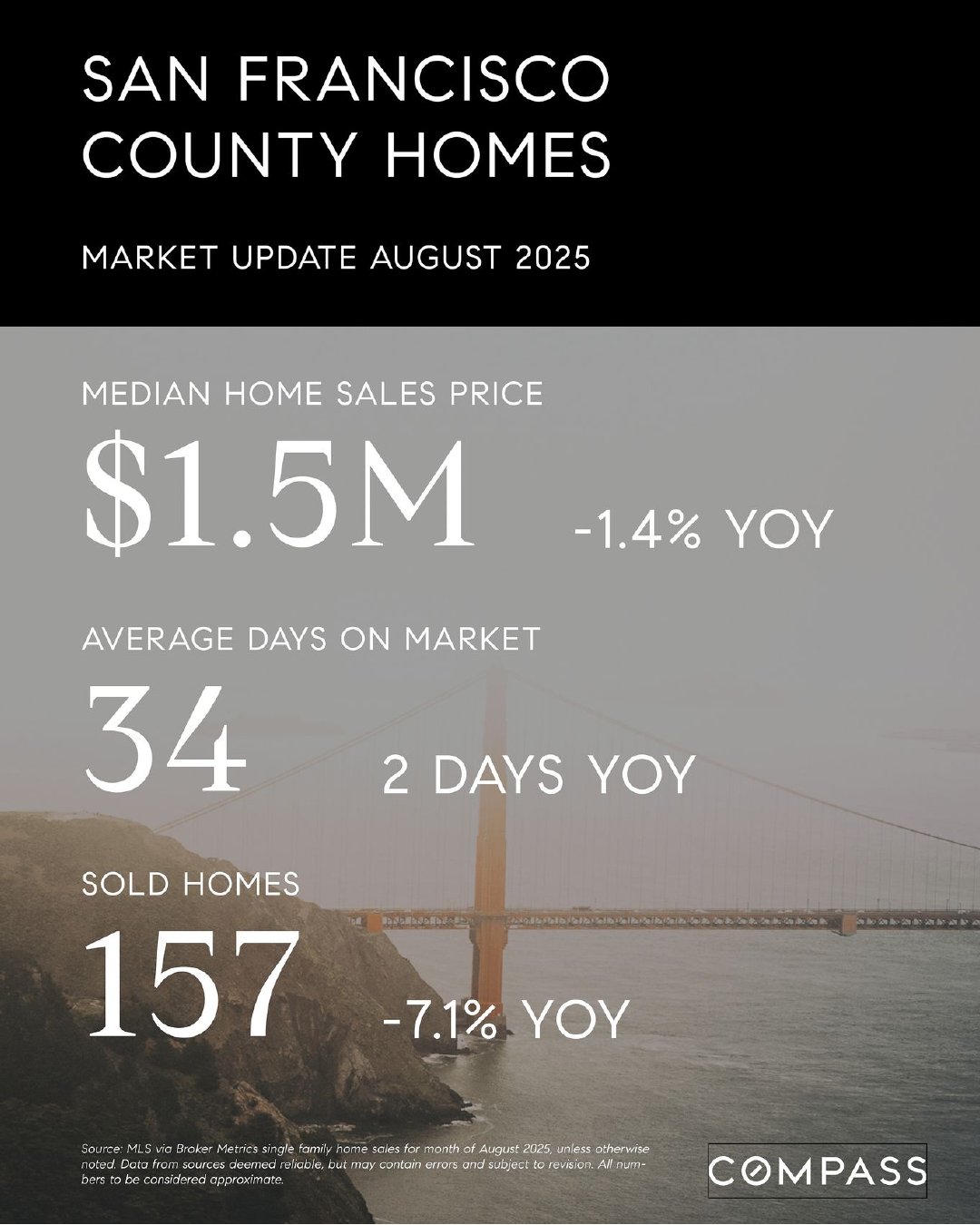 Things are zipping along with the typical rise in inventory for the fall selling season and buyers are out in force. The AI boom continues to gain traction in San Francisco and stock markets have hit new all-time highs in the past month, a big positive for affluent real estate markets like the Bay Area. Interest rates are dropping, always good news, but consumer confidence ratings remain low; measures of economic uncertainty - both national and international - remain high; and much depends on the jobs and inflation reports in the coming weeks and months. Click the buttons below for detailed information and recent statistics, broken down by local area.