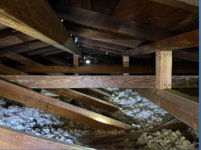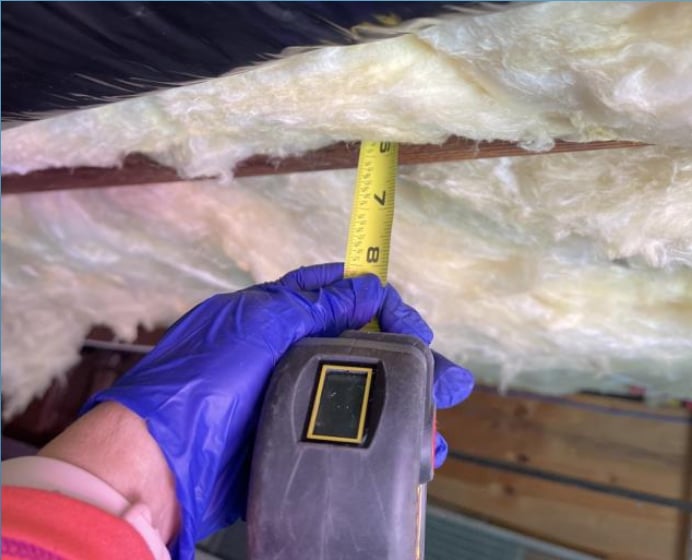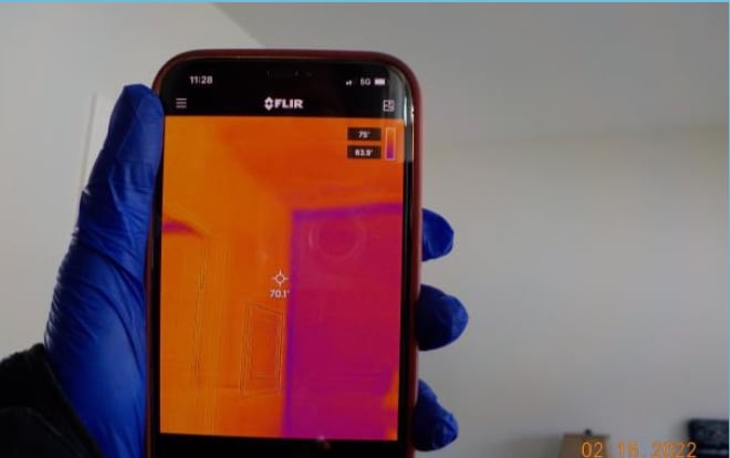 Her thermal mapping showed that there is limited insulation in the walls, particularly the back section of the house that was built in the 1950s. The purple section in the photo is cold air coming through the back wall of the house. The insulation in the crawl space was pretty good, but while there is insulation in the attic, it could definitely be improved.